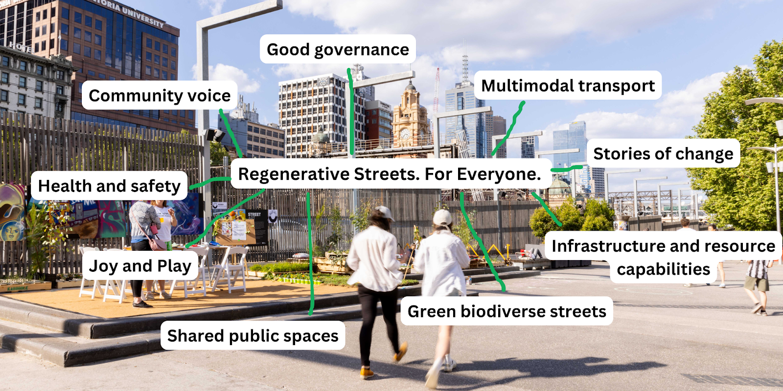 The data tells us communities want voices heard, good governance, safe and healthy streets, joyful and playful spaces, access to shared public spaces, balanced multi-modal transport, greener and more biodiverse streets, and stories of change that can drive transition.